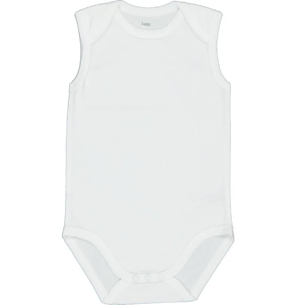 Ce body blanc est confectionné en 100 % coton et présente une coupe sans manches. L’encolure ronde et le tissu doux assurent un confort optimal à votre bébé. Le body affiche un design épuré, sans boutons apparents ni impressions. Grâce à l’utilisation du coton, la matière est agréable au toucher et parfaitement adaptée à un usage quotidien.