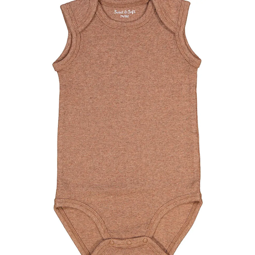 Ce body est sans manches. Il est donc polyvalent et peut être porté sous presque tout, mais aussi comme haut pendant les journées chaudes. La structure en fines côtes lui donne un aspect simple et soigné.