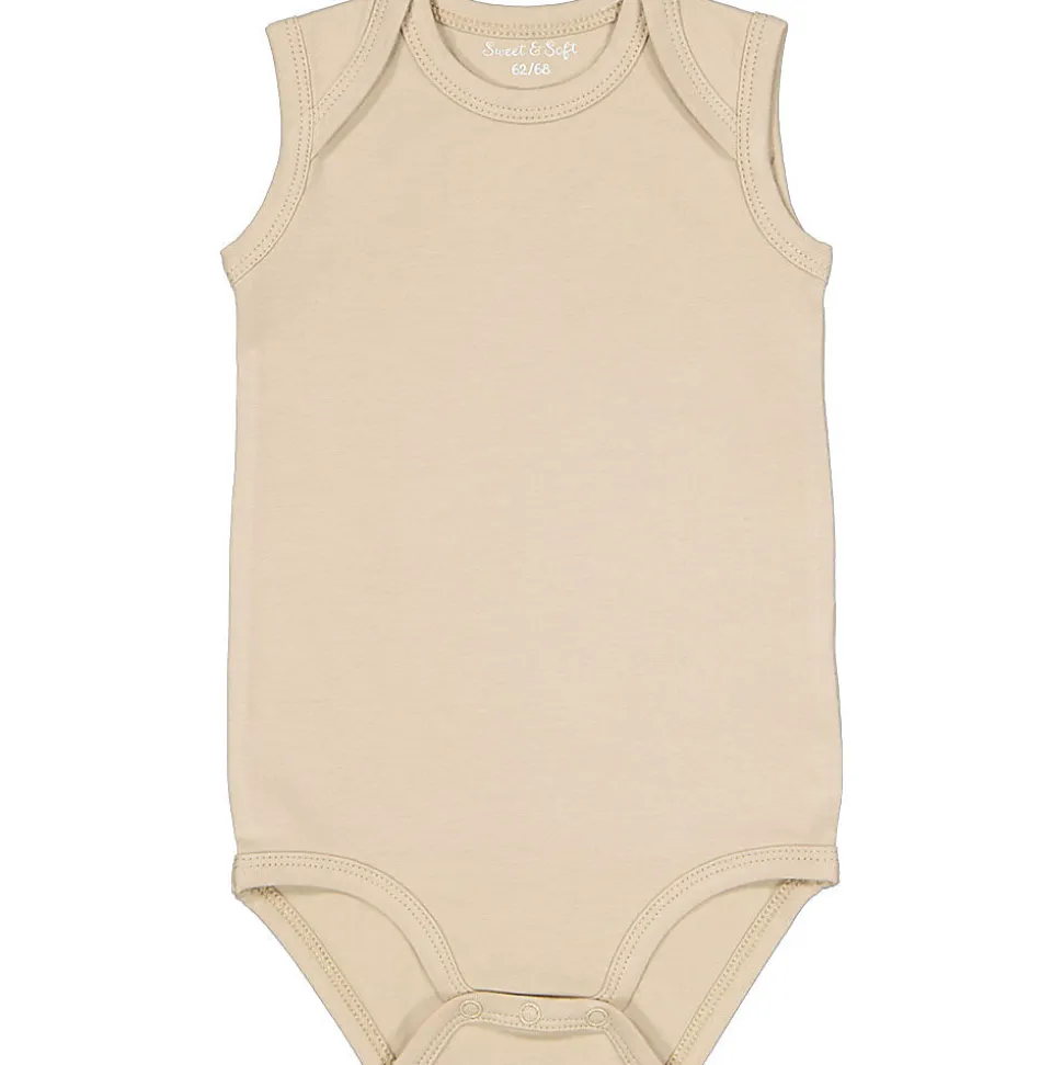 Ce body marron clair a une coupe sans manches, qui laisse les bras libres et offre une sensation de légèreté. Le tissu doux mêlant du coton avec un peu d’élasthanne est légèrement extensible, pour que le body épouse confortablement le corps. L’encolure américaine facilite l’habillage et le déshabillage. La couleur unie confère un style sobre.
