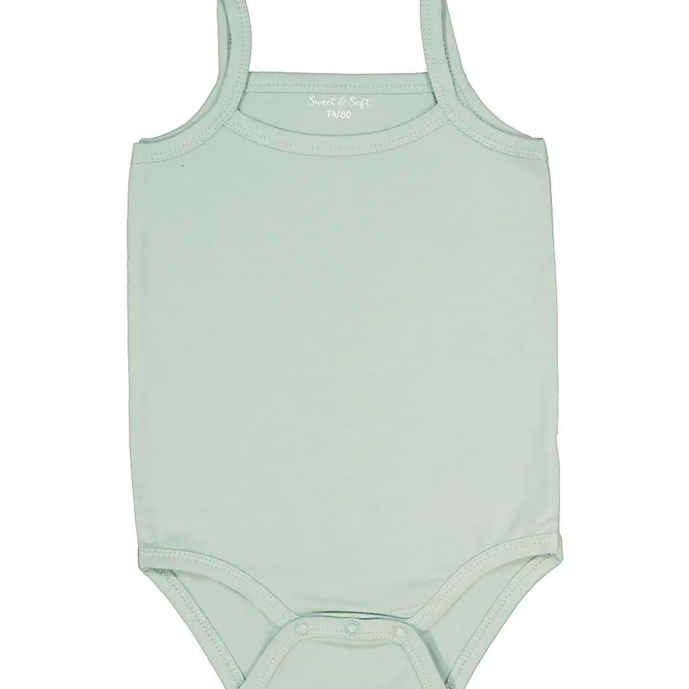 Ce body vert pour bébé a de fines bretelles et est sans manches, ce qui laisse votre bébé libre de ses mouvements et le rend léger à porter. Le coton doux est agréable sur la peau. Des boutons-pression se trouvent en bas pour ouvrir et fermer le body facilement lors de l’habillage ou du change. La couleur unie donne un aspect simple et apaisant.