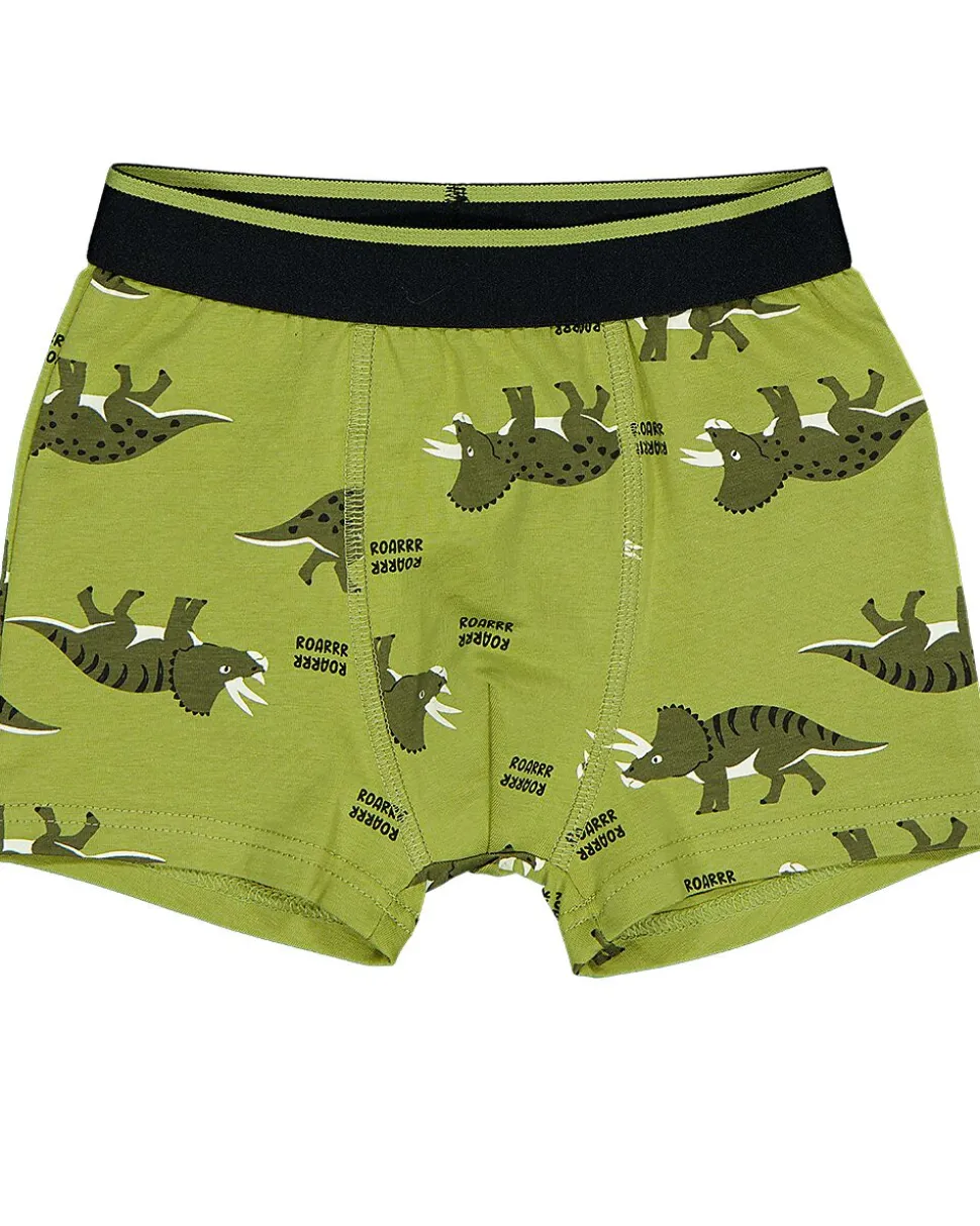 Ces 3 boxers pour garçon possèdent une taille élastiquée qui s’ajuste parfaitement et confortablement. Ils sont déclinés en vert et blanc et arborent un imprimé de dinosaures. Ils sont fabriqués dans un doux mélange de coton, polyester et élasthanne, ce qui garde le tissu souple et le rend agréable à porter, y compris lorsque votre enfant bouge.