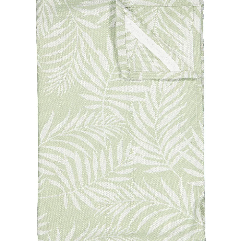 Cet essuie-verres de couleur verte est fabriqué en 100 % coton et présente un motif de feuilles blanches. Grâce à son format carré de 63 x 63 cm, il se pose facilement ou se suspend à un crochet dans la cuisine. Il s’accorde parfaitement avec un style naturel et épuré.