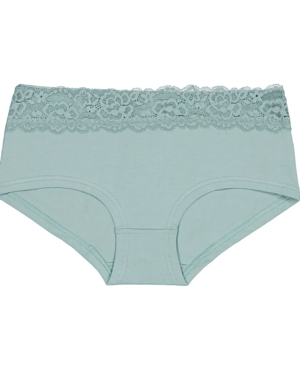 Ce shorty pour femme est vert et possède une taille élastiquée surmontée d’une large finition en dentelle. Le tissu est composé à 95 % de coton et 5 % d’élasthanne, offrant une coupe confortable et douce. Le lot contient deux shortys, tous deux sans motifs ni imprimés visibles. Idéal pour un confort quotidien grâce aux matières souples et aux finitions soignées.