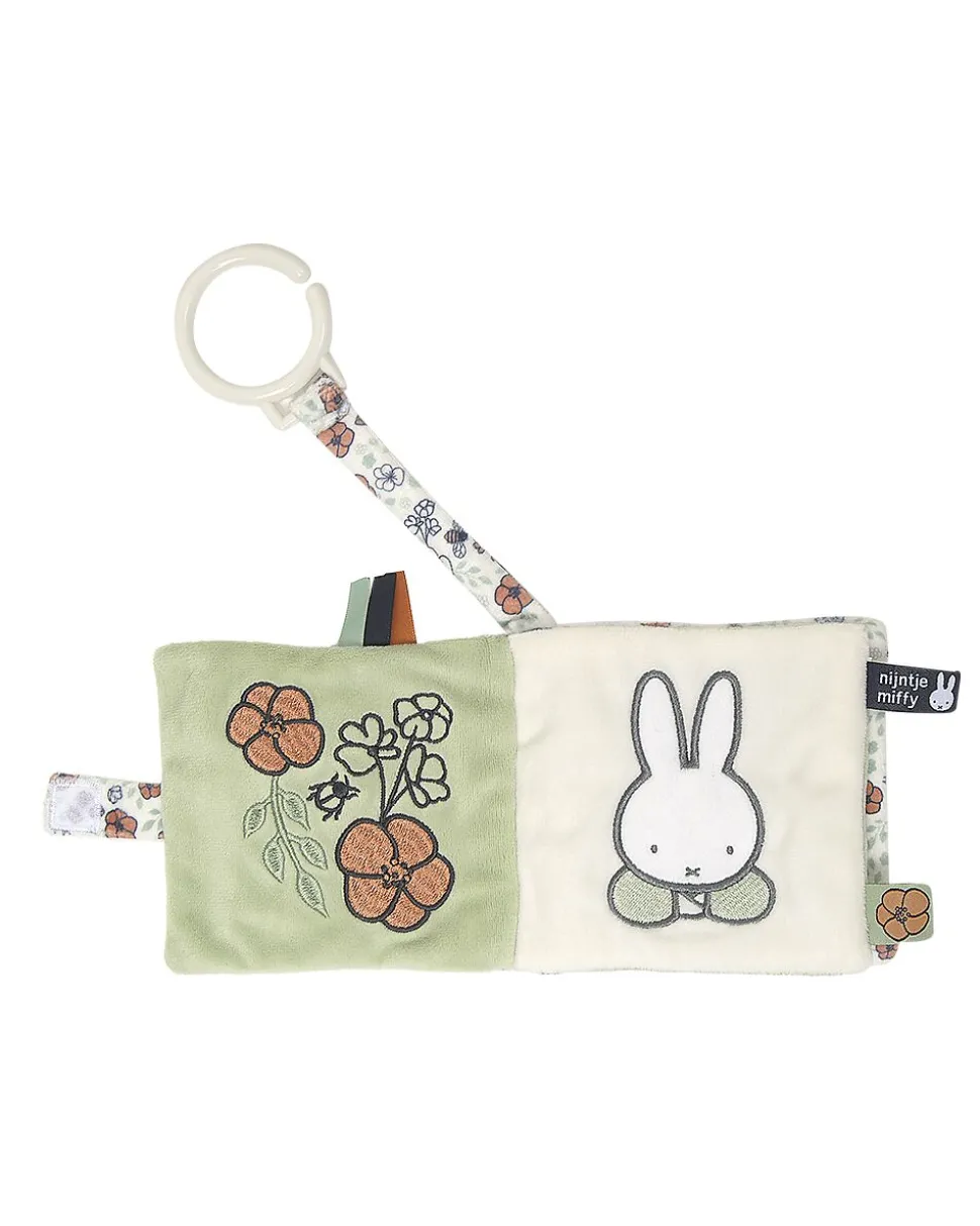 Ce livre de poussette est fait dans une matière douce et présente un motif fleuri. Grâce à sa petite boucle avec un anneau, vous pouvez facilement l’attacher à une poussette ou à une voiturette, pour ne pas le perdre en chemin. Pratique et agréable pour les sorties avec bébé.