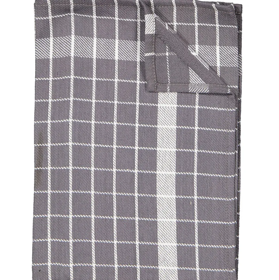 Cet essuie-verres Madrid est gris avec un motif à carreaux blancs. Il est fabriqué en 100 % coton, ce qui le rend résistant. L’essuie-verres est doté d’une boucle de suspension permettant de l’accrocher facilement dans la cuisine après utilisation.