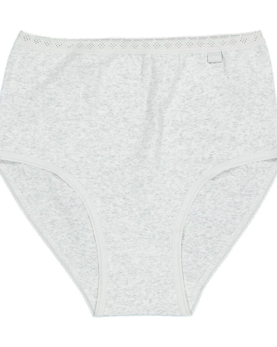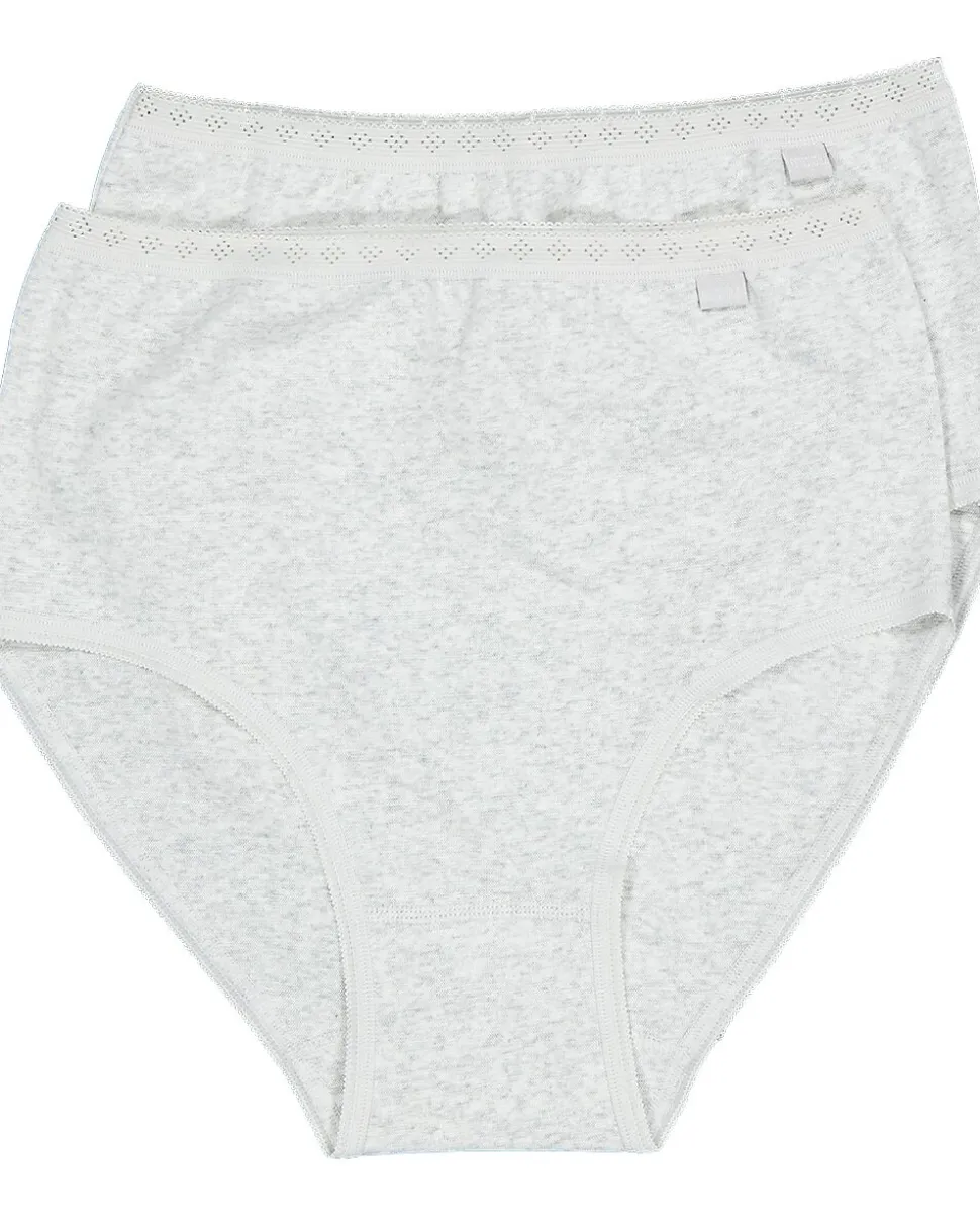 Ces culottes gris clair taille haute pour femme sont composées à 95 % de coton et 5 % d’élasthanne. Grâce à leur texture côtelée, elles sont douces et épousent bien les courbes du corps. La taille haute et la bande élastiquée les rendent confortables et assurent un ajustement parfait. Le haut de la bande élastiquée est agrémenté d’une finition en dentelle. Le lot contient deux culottes.