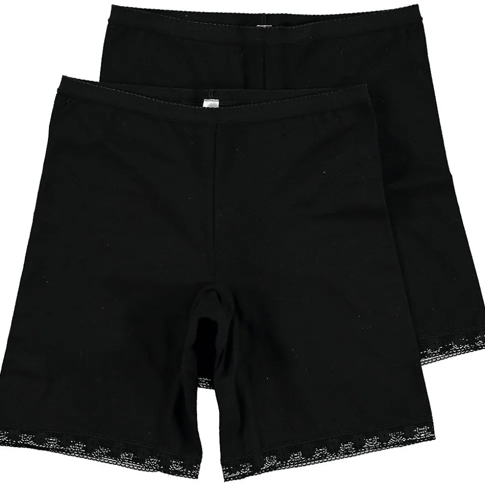 Ce shorty noir pour femme est en coton avec un peu d’élasthanne. Il est résistant et s’étire légèrement. Les jambes un peu plus longues avec un petit bord décoratif s’adaptent bien à vos jambes, ce qui le rend confortable sous une jupe ou une robe. Vous recevez un lot de deux shortys, pour toujours en avoir un de rechange sous la main.