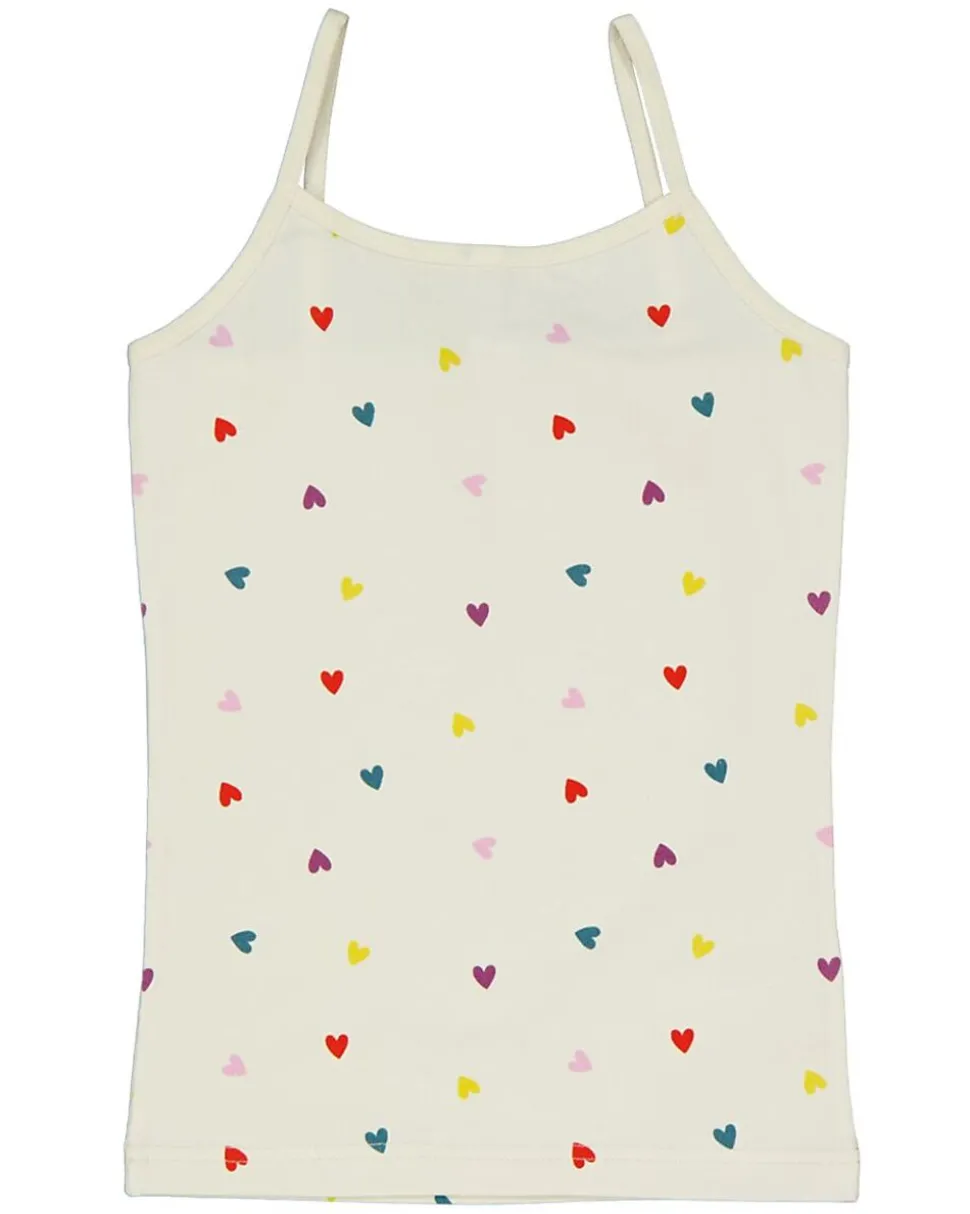 Ce débardeur Romy beige pour filles est décoré de jolis cœurs rouges, jaunes, verts, roses et bleus. Les bretelles fines donnent une sensation légère, ce qui permet de porter facilement le débardeur sous d’autres vêtements. Le coton doux avec un peu d’élasthanne rend le tissu légèrement extensible et agréable sur la peau.