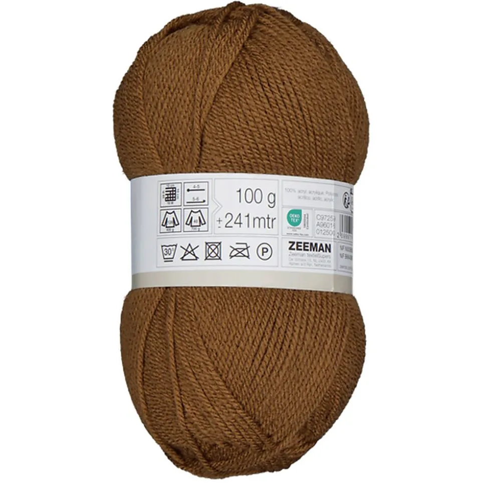 Ce fil à tricoter beige est parfait pour toutes sortes de projets créatifs de crochet et de tricot. La pelote pèse 100 grammes et est composée à 100 % d’acrylique, ce qui garantit un fil doux et agréable à travailler. Un échantillon de 10 x 10 cm contient 18 mailles et 28 rangs. Convient pour des aiguilles à tricoter de taille 4-5 et des crochets de taille 5-6.