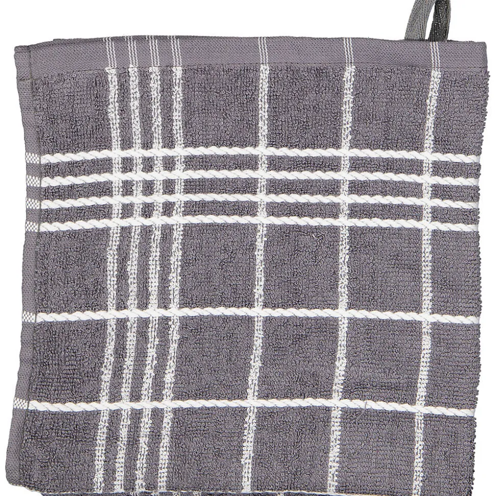 Ce torchon Salou est gris avec un motif à carreaux blancs. Le tissu en coton, robuste et bien absorbant, vous sèche les mains facilement. Grâce à la boucle de suspension pratique, vous pouvez accrocher rapidement le torchon.