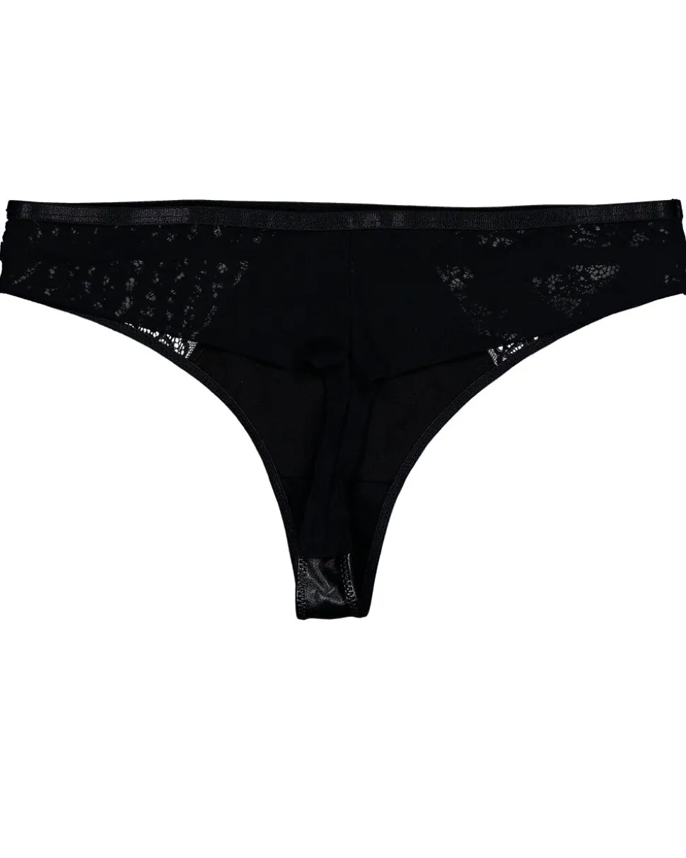 Ce string noir pour femme combine tissu lisse et dentelle. Le devant est formé d’un pan brillant, tandis que les côtés et le dos sont travaillés d’une dentelle transparente au motif subtil. Grâce à l’ajout d’élasthanne, le string épouse parfaitement les formes tout en étant confortable. La doublure en coton à l’intérieur offre un confort supplémentaire.