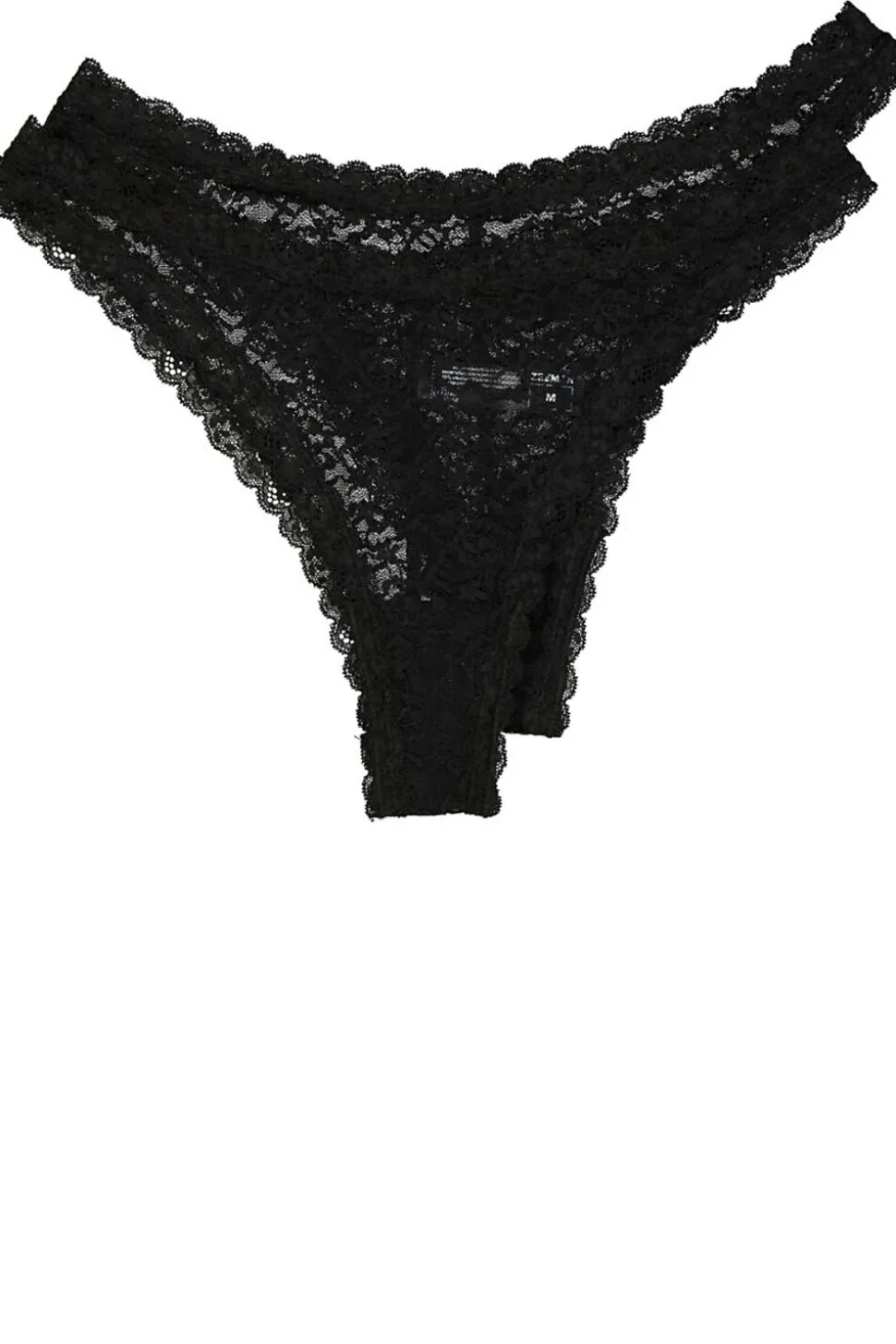 Ce lot se compose de deux strings noirs pour femme fabriqués dans un tissu extensible en dentelle. Avec leur large taille élastiquée, les strings s’ajustent agréablement et restent confortablement en place. La matière en dentelle confère aux strings un look aéré et procure une sensation de légèreté sur la peau.