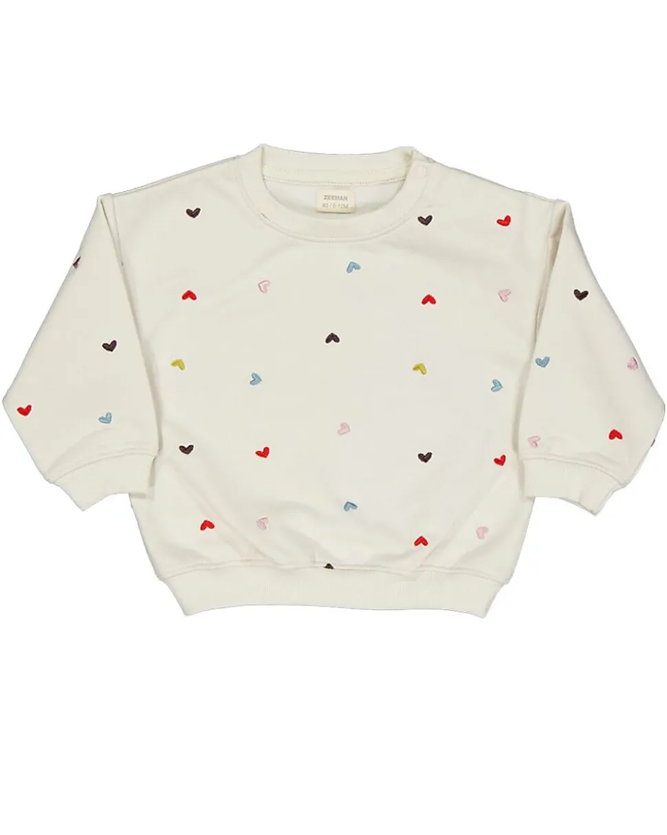 Ce pull beige pour bébé est fabriqué dans une matière douce et présente un motif joyeux avec de petits cœurs de différentes couleurs. Le pull a un col rond et des manches longues, ce qui apporte du confort et permet de l’enfiler et de le retirer facilement. Grâce au tissu souple, votre bébé peut bouger librement pour jouer ou se détendre.