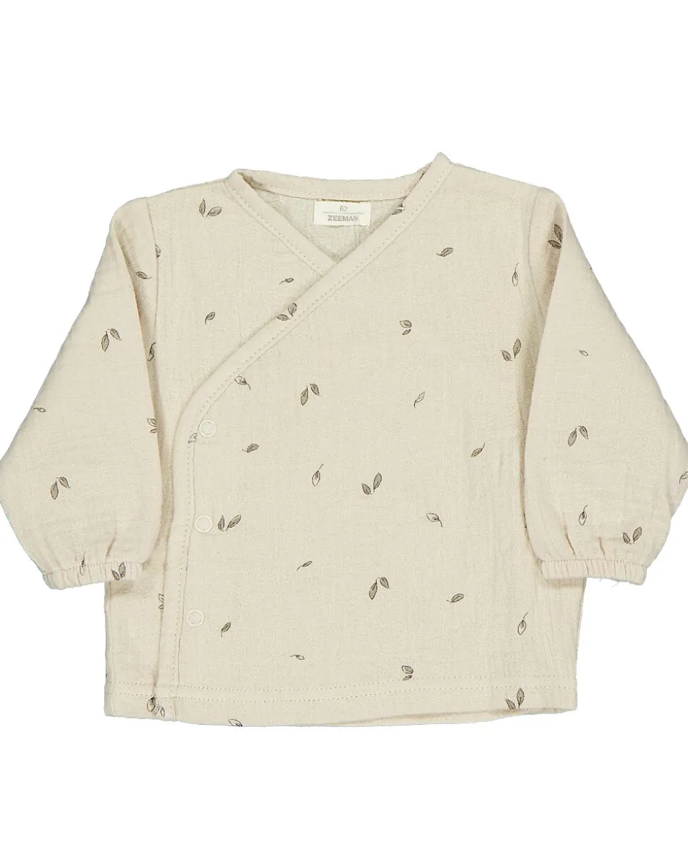 Ce t-shirt pour bébé beige est fabriqué en 100% coton et est doux sur la peau. Le t-shirt a une fermeture croisée, ce qui le rend facile à mettre et à enlever. Pratique pour changer votre bébé. Les manches longues avec élastique assurent un bon ajustement. L’imprimé discret donne au t-shirt un aspect calme. Confortable pour tous les jours.