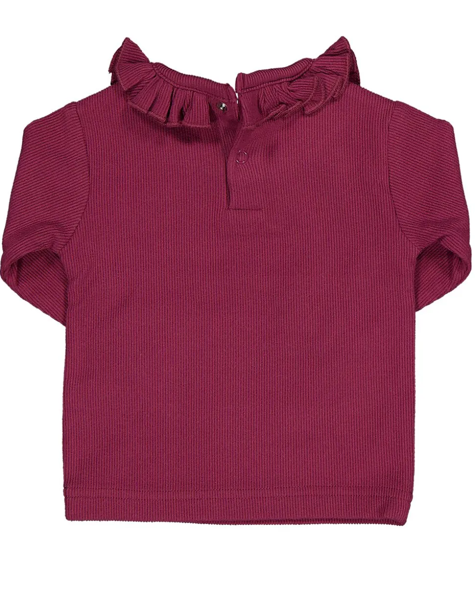 Ce t-shirt rouge à manches longues pour bébé est en tissu côtelé doux et a un col rond avec un col côtelé et des volants. Le tissu est agréable au toucher et confortable pour la peau sensible. Le modèle est bien ajusté, offre beaucoup de liberté de mouvement et, grâce à la fermeture à boutons sur l’épaule, il est facile à enfiler et à enlever. La couleur unie donne un aspect sobre.