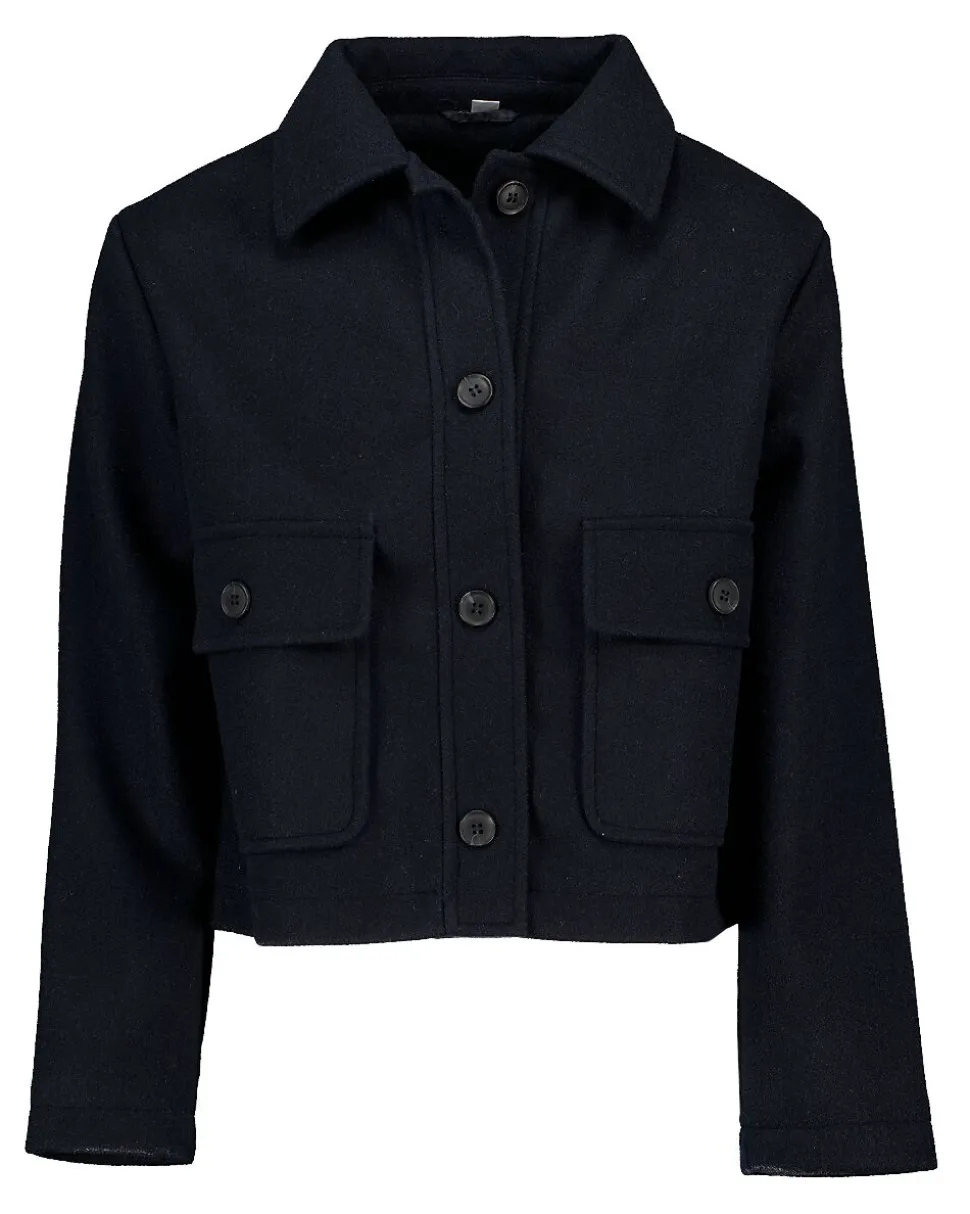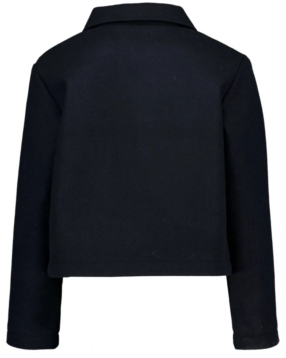 Cette veste bleu foncé pour fille est fabriquée en 100% polyester, ce qui rend le tissu résistant et lui permet de garder sa forme. La veste a un col classique et des manches longues. Elle se ferme facilement avec les grands boutons sur le devant. Les deux poches plaquées à rabat permettent d’emporter de petits objets. La couleur unie s’accorde avec toutes les tenues.