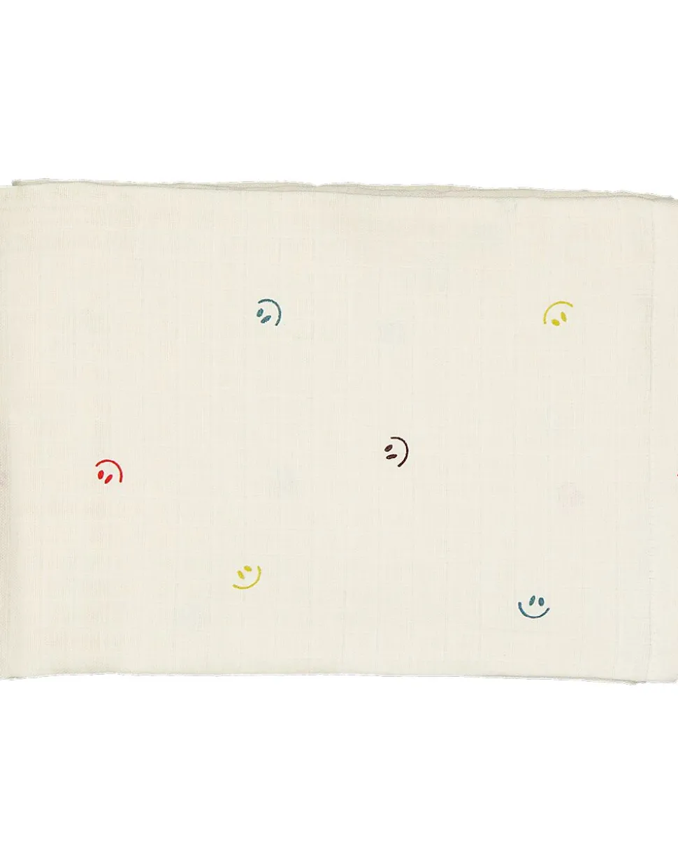 Cette couche hydrophile beige avec des smileys est faite dans une matière douce et légère. Avec un format de 110 sur 110 centimètres, ce tissu peut servir à plusieurs usages, par exemple comme couverture ou comme couche supplémentaire pendant le sommeil. La matière est agréable sur la peau, ce qui la rend adaptée aux bébés.