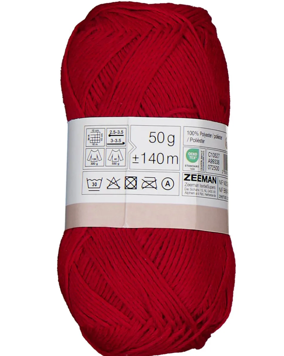Ce fil Amy convient aux aiguilles à tricoter de taille 2,5 à 3,5 et aux crochets de taille 3 ou 3,5. Une pelote de ce fil à tricoter pèse 50 grammes et a une longueur de 140 mètres. Un échantillon de 10 x 10 cm correspond à 16 mailles x 30 rangs. Le fil est composé à 100 % de polyester et ne contient aucune substance nocive. C’est pourquoi il est certifié Oeko-Tex.