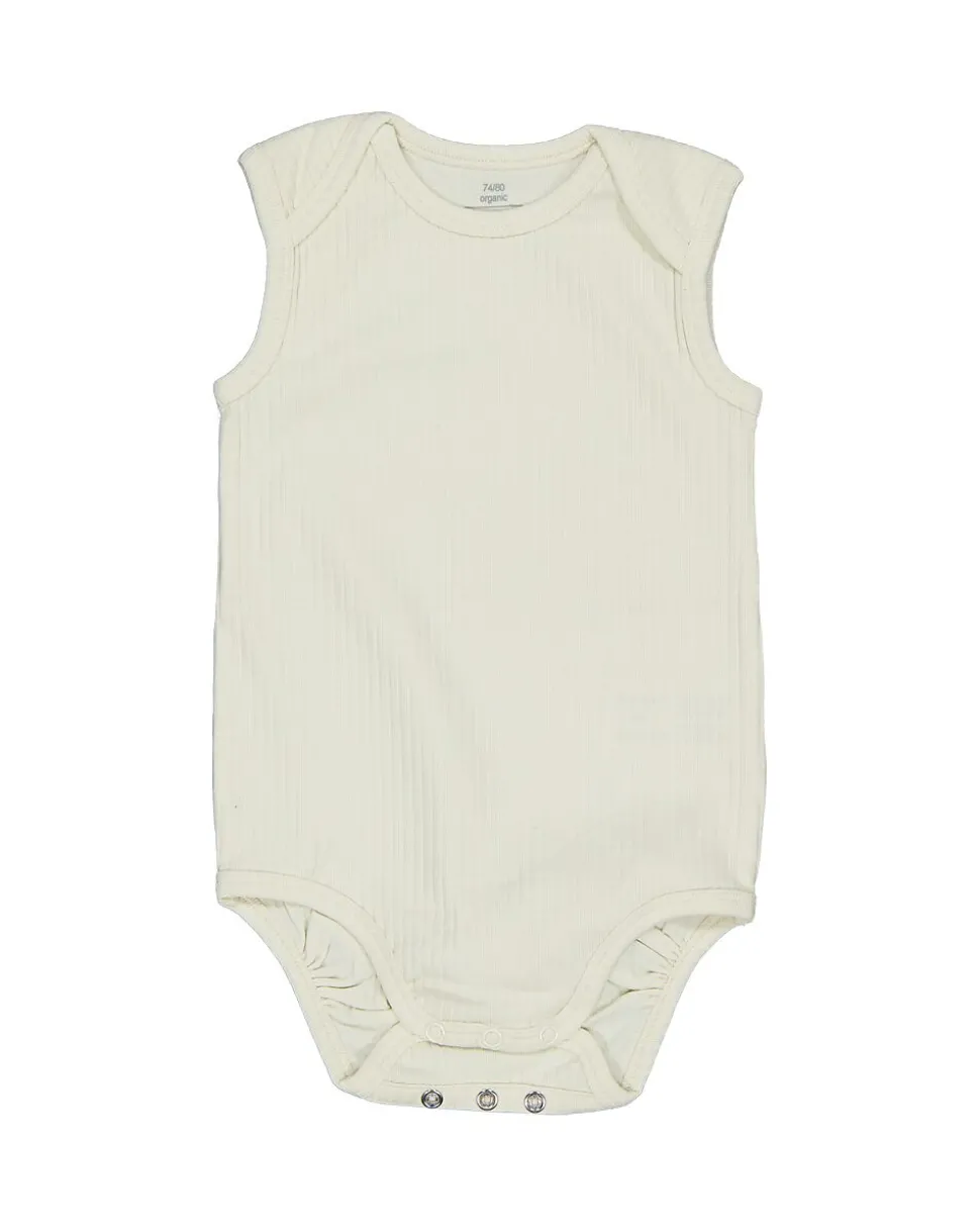 Cet ensemble se compose de deux bodies sans manches pour bébé, dans une couleur claire et unie. Les bodies sont fabriqués à 95 % de coton et 5 % d’élasthanne, offrant ainsi un tissu doux et extensible qui procure un confort optimal sur la peau. Le bas est muni de boutons-pression pratiques, ce qui permet de changer votre bébé rapidement et facilement.