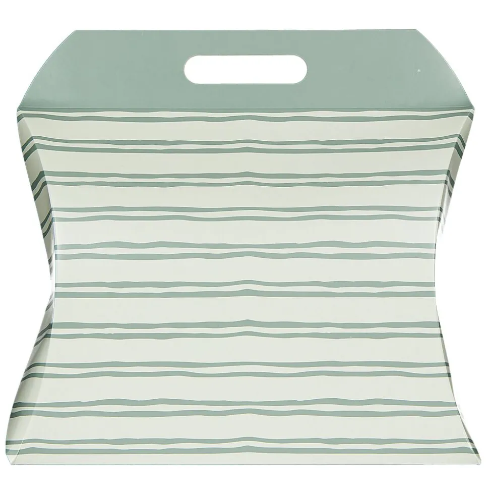 Cette boîte cadeau est faite en papier léger et a une couleur verte avec un motif de rayures horizontales. Grâce au matériau solide, elle convient bien pour emballer un cadeau. La poignée sur le dessus permet de porter et de transporter la boîte facilement. Pratique pour offrir une surprise.