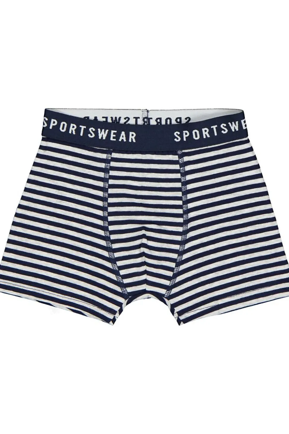Ce lot de deux boxers Sportswear pour garçon comprend un modèle bleu foncé et un à rayures bleues et blanches. La ceinture élastique maintient les boxers bien en place. En jersey simple de coton légèrement travaillé d’élasthanne, ils sont agréables au toucher et légèrement extensibles pour épouser joliment le corps.