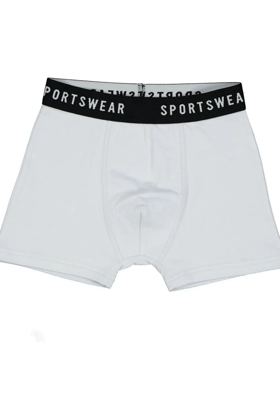 Ce lot de quatre boxers pour garçon se décline en bleu, bleu foncé, blanc et gris clair. La taille élastiquée au texte « SPORTSWEAR » est extensible, garantissant des boxers qui restent agréablement en place. Grâce à l’association du coton, du polyester et de l’élasthanne, ils sont doux et épousent confortablement le corps.