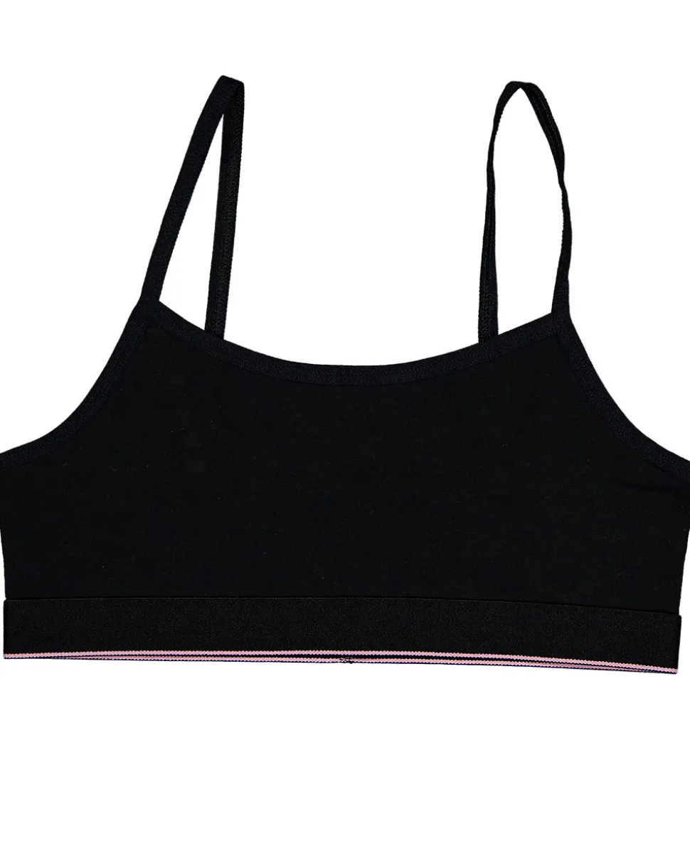 Ce lot comprend deux brassières pour fille. L’une est noire, l’autre rose avec un imprimé framboises. Les fines bretelles et l’encolure droite assurent une coupe confortable. Grâce au tissu doux composé à 95 % de coton et 5 % d’élasthanne, les brassières épousent bien la silhouette et suivent les mouvements du corps.