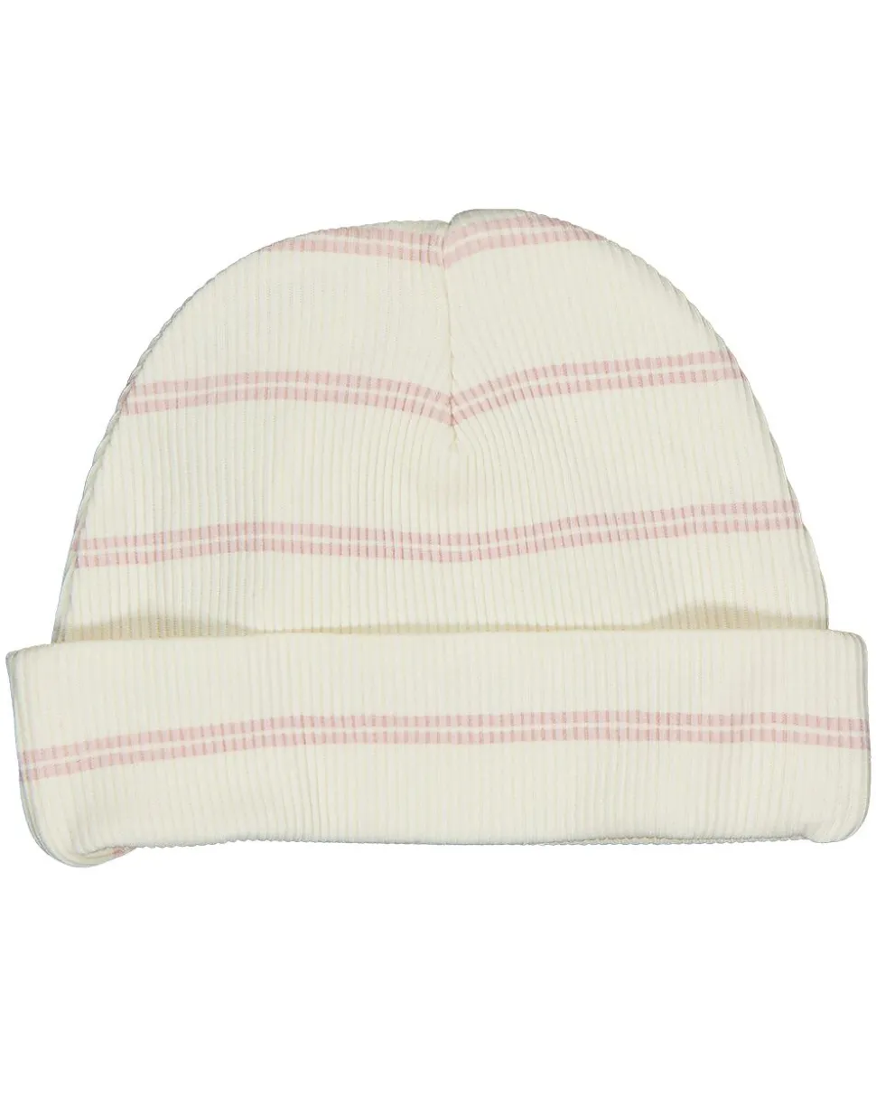 Ce bonnet pour bébé est présenté en rose avec un motif subtilement rayé. Le bonnet est confectionné dans un tissu doux composé de 48 % coton, 48 % viscose et 4 % élasthanne. Le revers assure un ajustement confortable et une chaleur supplémentaire. Idéal pour protéger la tête de votre bébé du froid, aussi bien à l’intérieur qu’à l’extérieur. Le tissu est agréable au toucher sur la peau.
