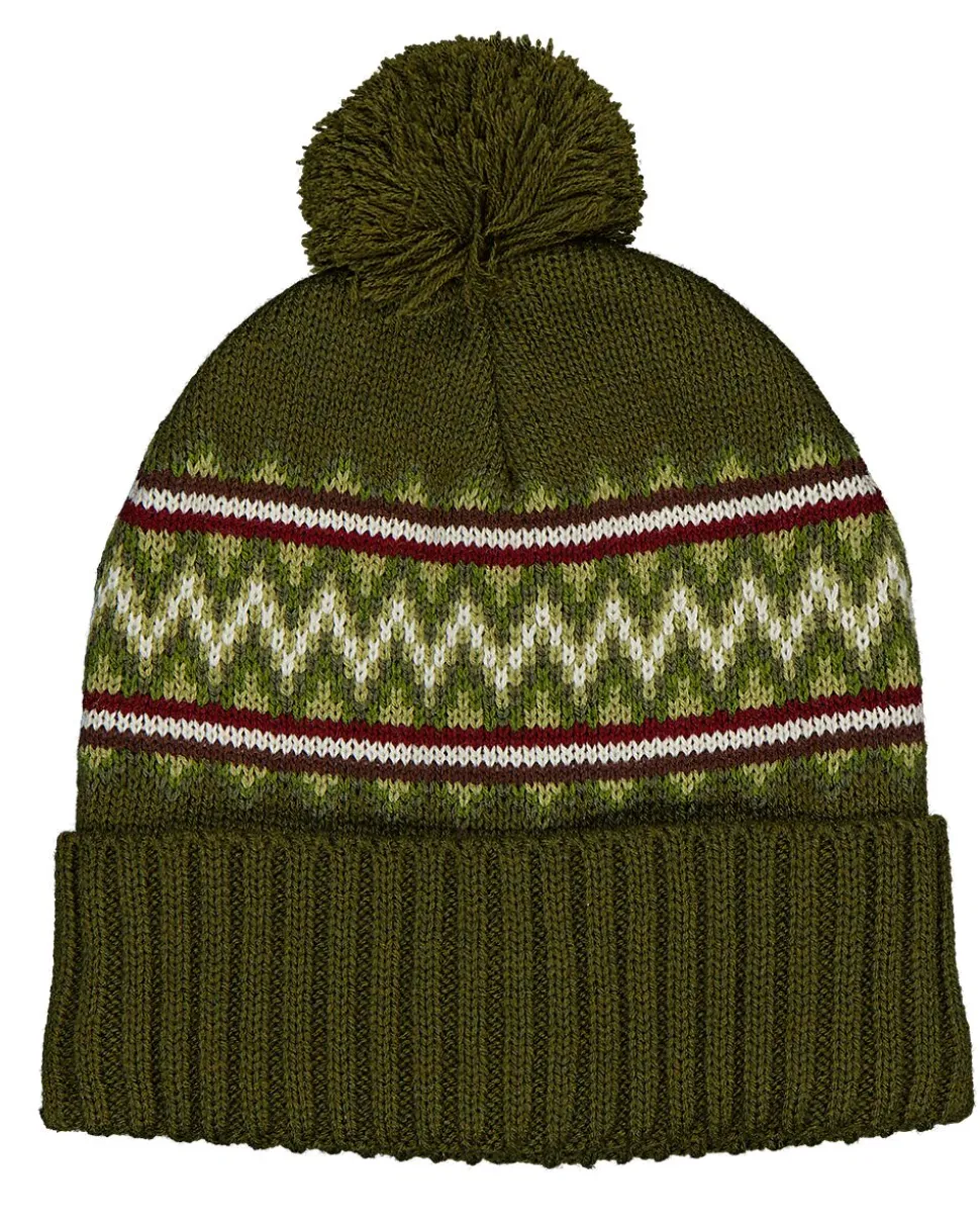 Ce bonnet vert a un motif de tricot classique avec des accents blancs et rouges. Le large bord côtelé permet au bonnet de bien tenir et d’être confortable. Le tricot épais garde la tête bien au chaud pendant les jours froids. Le gros pompon sur le dessus donne une touche ludique. Convient pour un usage quotidien par temps froid.