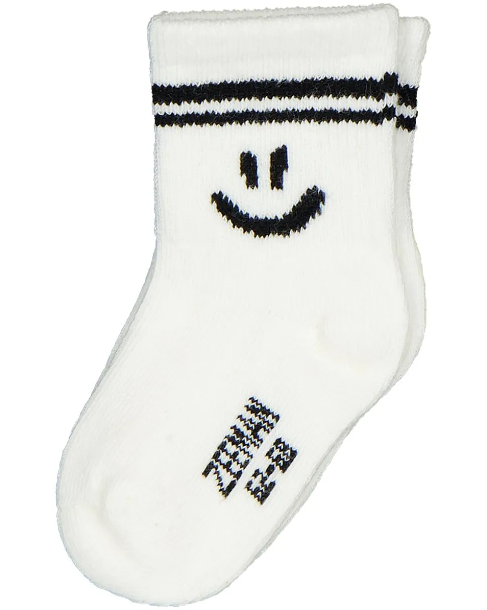 Ces chaussettes blanches pour bébé ont deux bandes noires en haut et un smiley sur le devant. La matière douce avec du coton biologique est agréable sur la peau de votre bébé, pour un port confortable. Grâce à l’ajout de polyamide et d’élasthanne, les chaussettes sont légèrement extensibles et tiennent bien en place. La couleur neutre permet de les assortir facilement à différentes tenues.