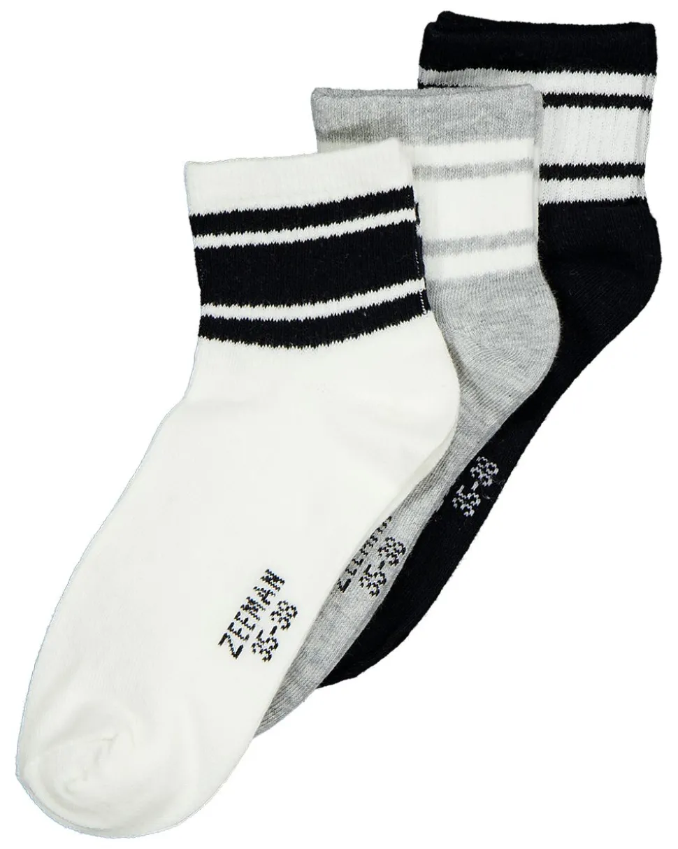 Ce lot de trois paires de chaussettes a des rayures sportives en haut. Grâce à la combinaison de coton et de polyester recyclé, elles sont douces et laissent respirer vos pieds. La bordure élastique permet aux chaussettes de bien rester en place et de ne pas glisser, ce qui apporte un confort supplémentaire au quotidien.