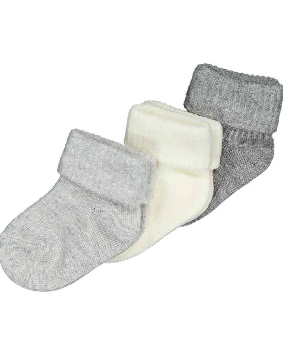 Ce lot de 3 paires de chaussettes pour bébé comprend les couleurs gris clair, blanc et gris foncé. Elles sont faites dans un mélange doux de coton, polyester et élasthanne. Les chaussettes sont légèrement extensibles et ont un revers, ce qui leur permet de bien tenir autour de la cheville et d’être confortables. Parfaites pour garder les pieds de bébé au chaud et protégés.