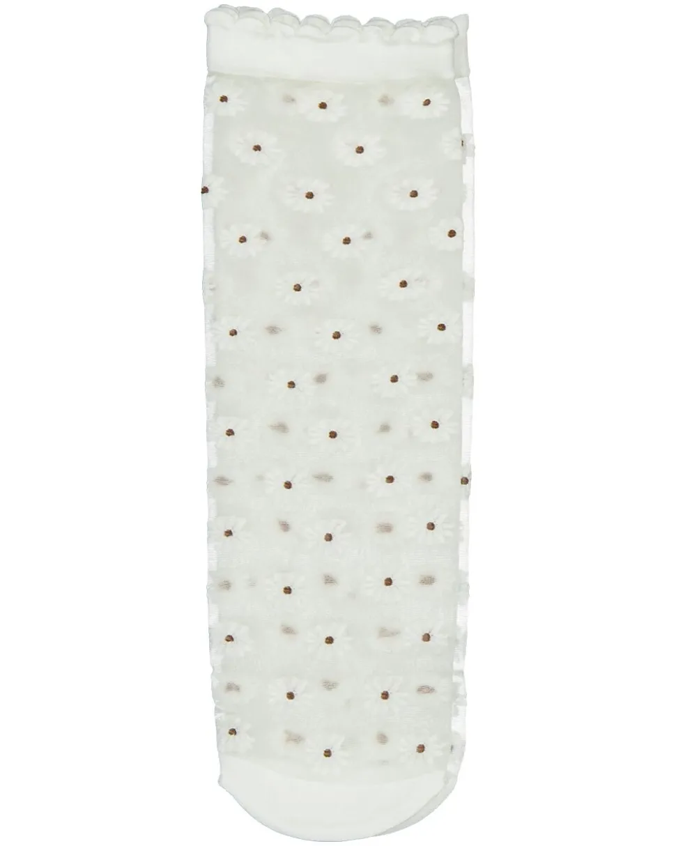 Cet ensemble comprend deux paires de socquettes transparentes avec un motif fleuri. Elles sont fabriquées dans un mélange de polyester, de polyamide et d’élasthanne, ce qui rend le tissu léger et souple. Les socquettes ont une structure fine de 20 deniers, ce qui leur donne un aspect fin et les rend agréables à porter.