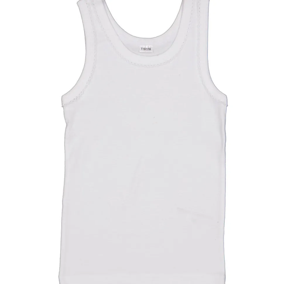 Ce débardeur blanc pour filles est fait dans une matière douce avec soixante pour cent de coton et quarante pour cent de polyester. Le single jersey souple est agréable sur la peau, ce qui permet de bouger confortablement toute la journée. Il a des bretelles larges et une encolure ronde, et il s’adapte bien sans serrer.
