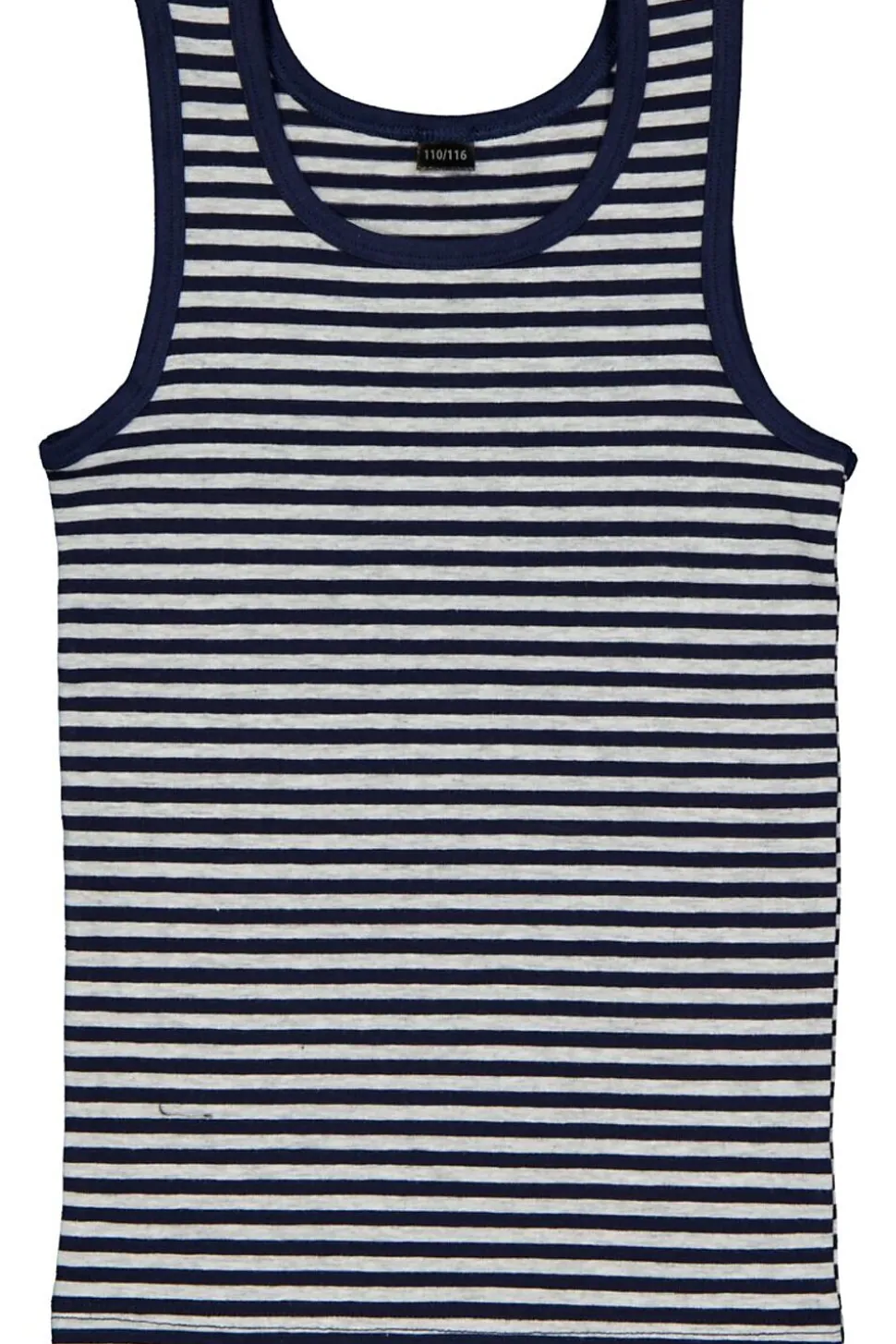 Ce débardeur pour garçon est bleu à rayures blanches et a un col rond. Il est fabriqué en coton avec un peu d’élasthanne, ce qui rend le tissu doux et légèrement extensible. Le modèle sans manches offre une grande liberté de mouvement, ce qui permet de le porter confortablement sous un t-shirt ou un pull. Le paquet contient une pièce.
