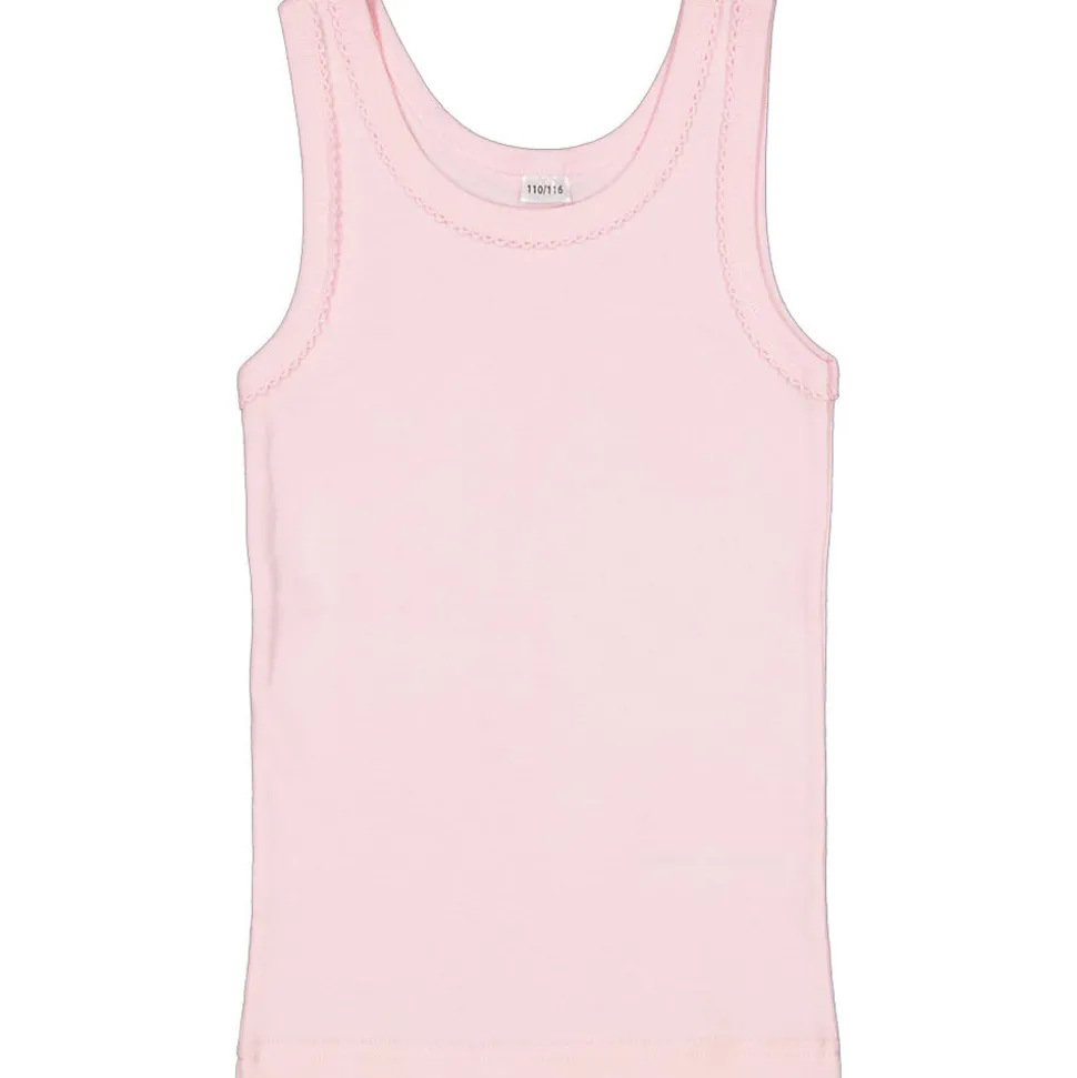 Ce débardeur pour fille en rose a un col rond et de larges bretelles, ce qui le rend solide et agréable à porter. Le tissu en coton et polyester est doux et respirant, pour le porter confortablement sous vos vêtements. Le modèle sans manches le rend léger à porter. Grâce à sa couleur unie, il se combine facilement avec d’autres vêtements.