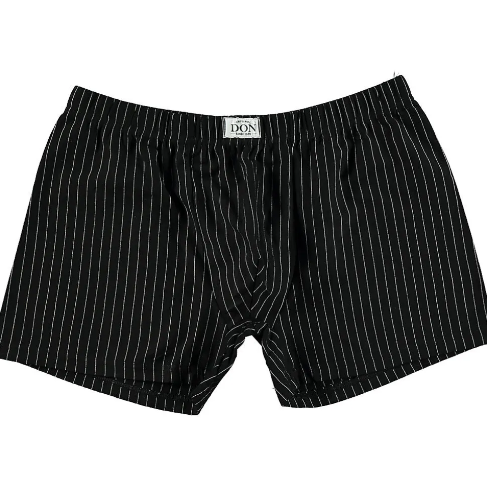Ces boxers DON noirs à rayures pour homme sont fabriqués en coton légèrement travaillé d’élasthanne. Cela rend le tissu résistant et légèrement extensible, pour un ajustement parfait. Les boxers ont une coupe près du corps et présentent une finition douce et lisse au niveau des jambes et de la taille. La coupe courte garantit un modèle qui reste bien en place, sans remonter. Le lot contient deux boxers.