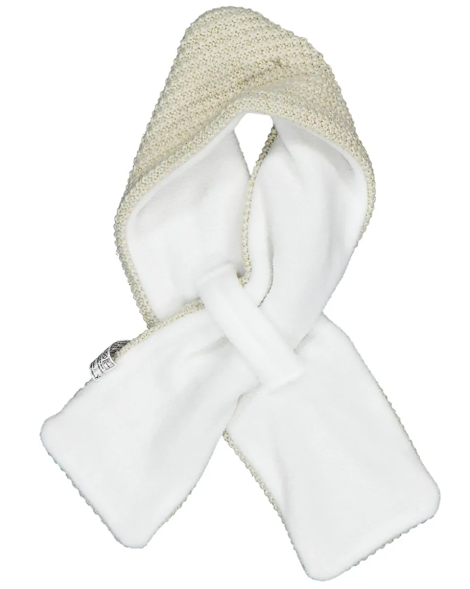 Cette écharpe avec bonnet et moufles est de couleur blanche et convient aux bébés. L’ensemble protège la tête, le cou et les mains du froid. Grâce au tissu doux, les bébés la portent de manière chaude et confortable. L’écharpe, le bonnet et les moufles forment un ensemble complet pour les jours froids.