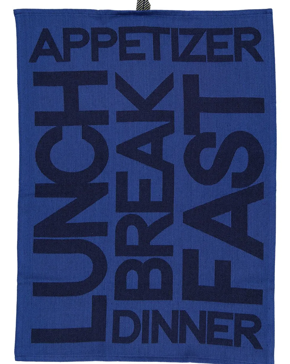 Ce torchon noir en coton jacquard a un motif marqué avec de grandes inscriptions contrastées comme « lunch », « break », « fast », « appetizer » et « dinner ». Le tissu est solide et agréable au toucher. Il convient pour sécher la vaisselle ou les mains dans la cuisine. Grâce à la boucle d’accroche, il est facile à suspendre après usage, ce qui est aussi pratique.