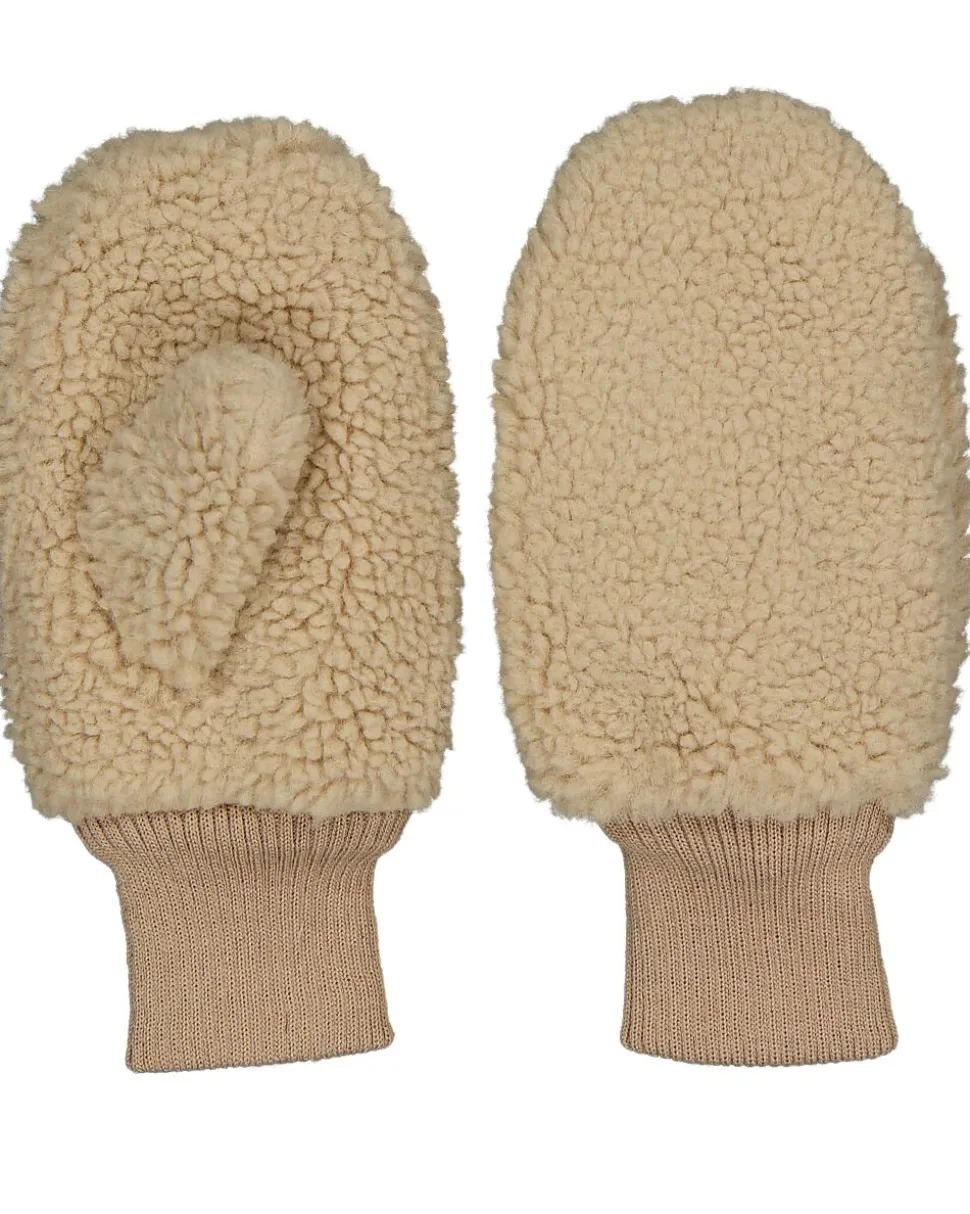 Ces moufles beiges sont en tissu teddy doux et ont un poignet côtelé. Elles tiennent bien autour des poignets et gardent les mains au chaud pendant les jours froids.