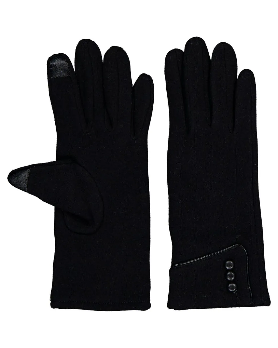 Gants noirs pour femme avec une finition lisse et de petits boutons décoratifs au poignet. L’index est équipé d’une partie spéciale, pratique pour utiliser un écran tactile. Les gants sont fins et épousent bien la main. Ils protègent du vent froid et conviennent à un usage quotidien par temps frais.