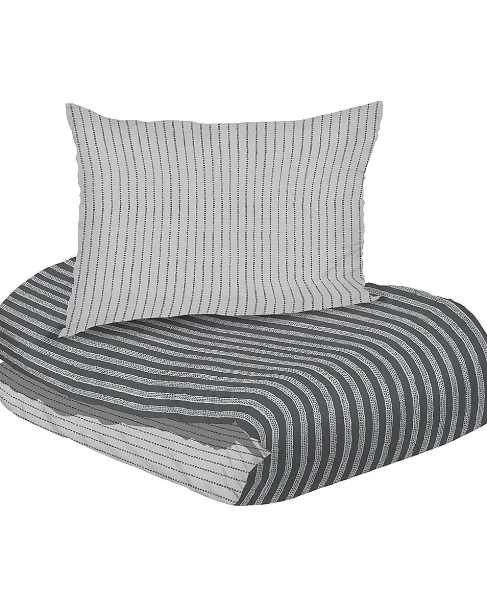 Cette housse de couette à rayures gris et blanc est en flanelle, ce qui rend le tissu doux et chaud. Les larges rayures doubles donnent à votre chambre un style calme et intemporel. La housse convient à un lit double de 200 sur 200 cm, pour dormir ensemble sous une seule couette. Avec un poids de 600 grammes, elle se change facilement.