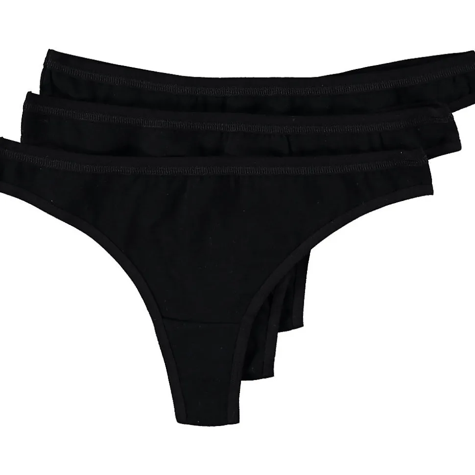 Ce lot comprend trois strings Katy noirs pour femme, confectionnés dans un tissu lisse qui épouse le corps. Composée de coton avec un peu d’élasthanne, la matière est douce et légèrement extensible, offrant un string confortable qui reste bien en place.