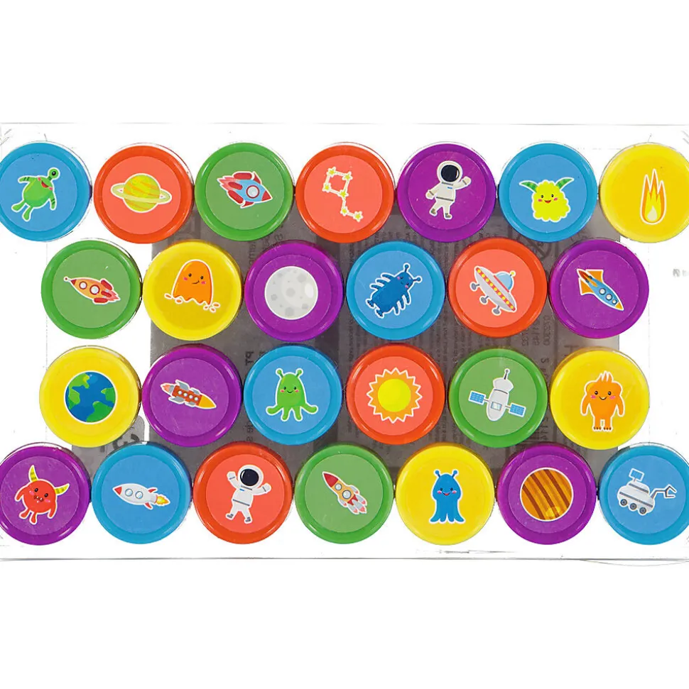 Ce set de tampons comprend six couleurs : rose, jaune, vert, bleu, violet et orange. Les tampons ont différentes formes, comme des fusées, des planètes, des robots et des animaux. Pratique pour les activités créatives ou pour décorer du papier et des cartes. Avec ce set, vous pouvez commencer tout de suite et faire facilement des impressions joyeuses.