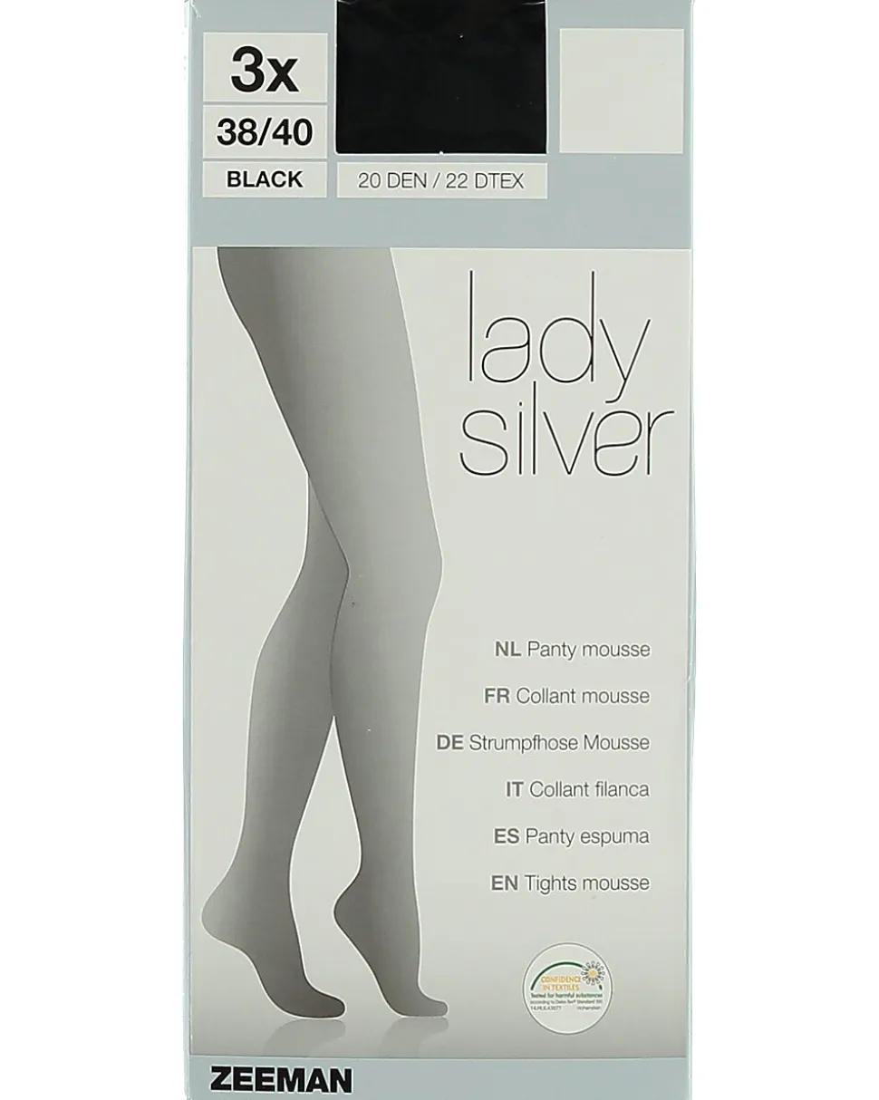 Ce collant Lady Silver de 20 deniers est noir, avec un aspect léger et transparent. Grâce à sa coupe confortable, le collant épouse agréablement vos jambes, vous permettant de bouger confortablement tout au long de la journée. Le tissu, uniquement composé de polyamide, confère au collant un toucher lisse et souple. Ce modèle se porte facilement sous une jupe ou une robe.