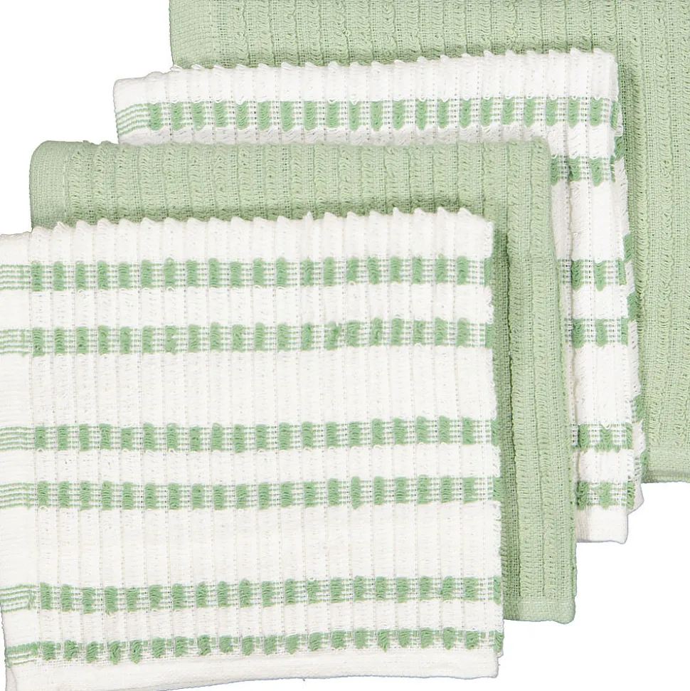 Ce lot se compose de quatre torchons en coton de 35 x 35 cm. Deux torchons présentent un motif rayé, les deux autres sont de couleur unie. Le coton est doux et bien absorbant. Les bords ont une finition résistante, pour que les torchons conservent leur forme. Même après lavage. Grâce à leur format compact, ces torchons verts sont parfaits pour la cuisine. Ils permettent d’essuyer votre plan de travail, de nettoyer la cuisinière ou d’éponger l’eau renversée. Avec ce lot de quatre, vous aurez toujours un torchon propre à portée de main.