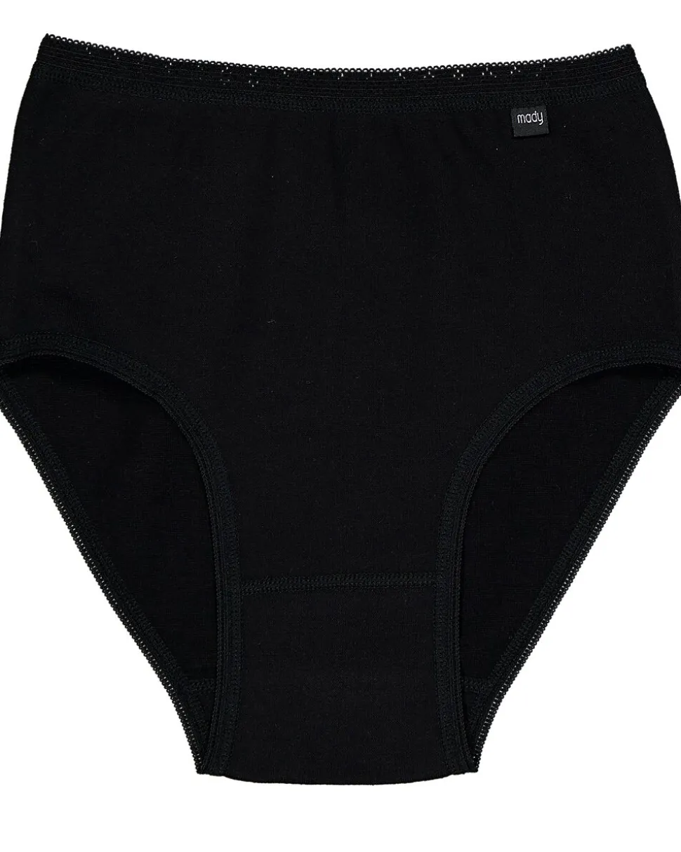 Ces culottes noires Mady pour femme sont composées à 95 % de coton et 5 % d’élasthanne, offrant un tissu doux et légèrement extensible. La coupe confortable garantit une culotte qui reste confortablement ajustée tout au long de la journée.
