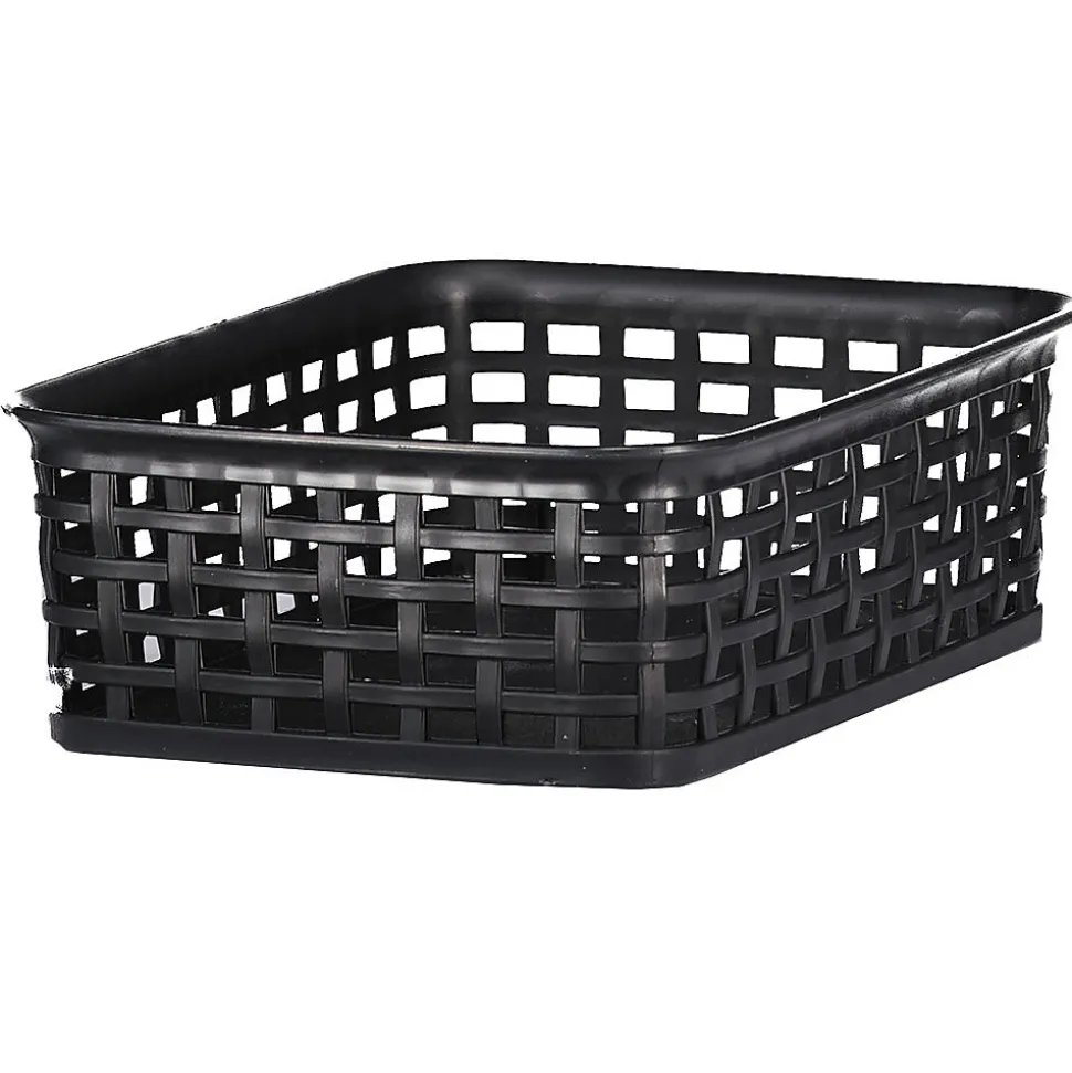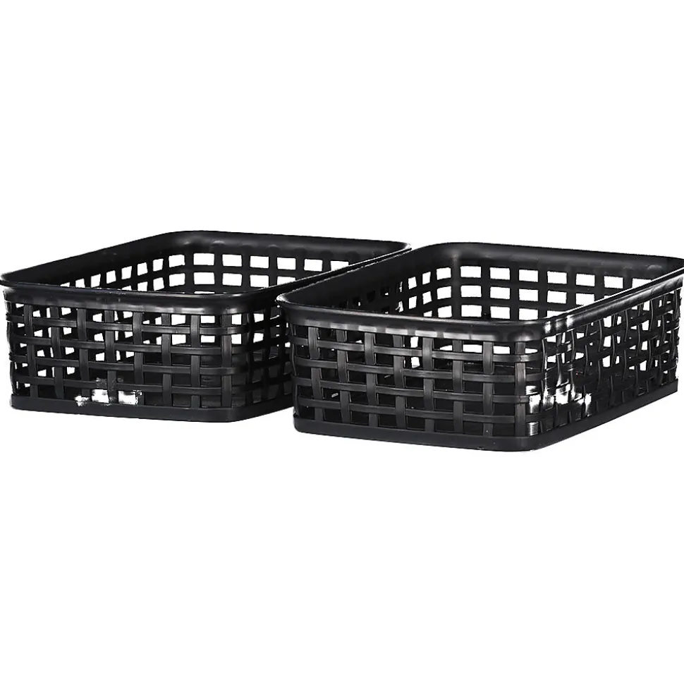 Cet ensemble de 2 paniers de rangement noirs a une structure ouverte en grille et une forme rectangulaire. Leur construction solide reste bien en place, ce qui permet de garder les petits objets ensemble. Grâce à leur format compact, ils se rangent facilement dans une armoire ou un tiroir, pour organiser votre maison simplement et de façon ordonnée.