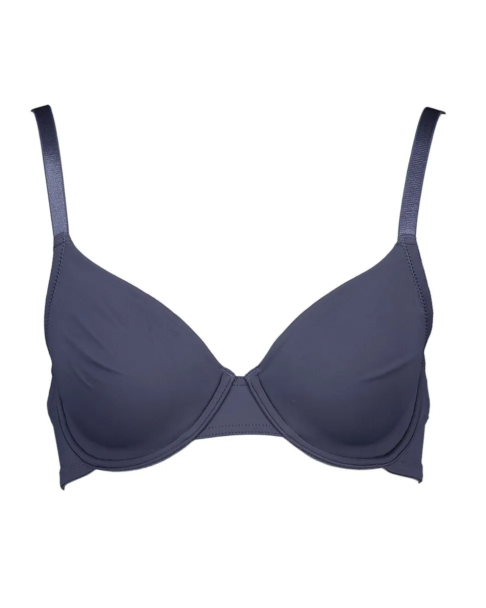 Ce soutien-gorge bleu foncé non rembourré est fait dans un tissu doux et lisse. Les bretelles réglables permettent d’adapter le soutien-gorge à votre corps. Grâce à sa couleur unie, il reste discret sous les vêtements.