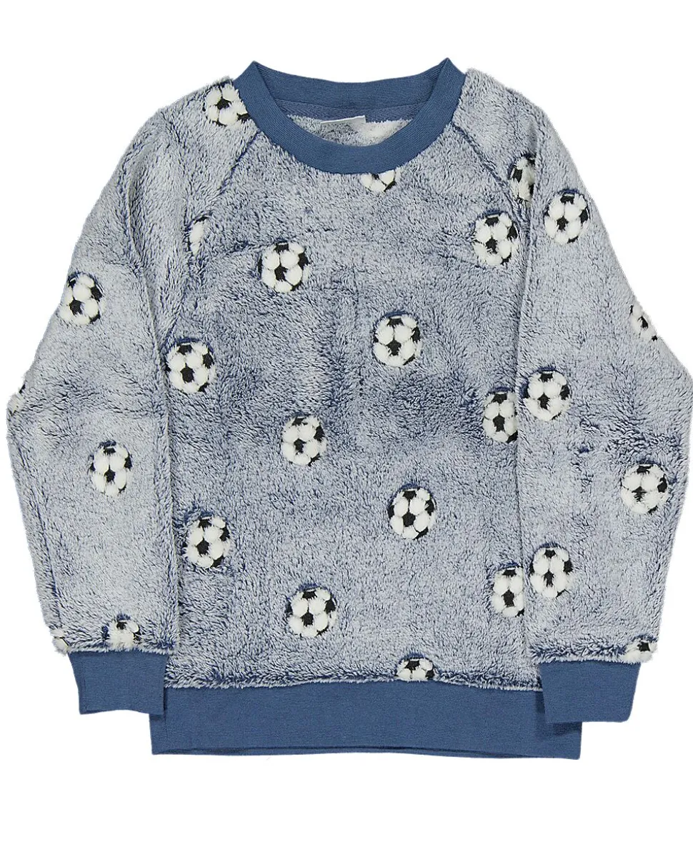 Ce twosie bleu pour garçon se compose d’un pull et d’un pantalon en coral fleece doux et confortable, 100 % polyester. L’ensemble a un motif de ballon de football et des bords côtelés. Idéal à porter à la maison pendant les jours plus froids. Le tissu tient votre enfant bien au chaud et se lave facilement. Cela rend cet ensemble pratique pour un usage quotidien.